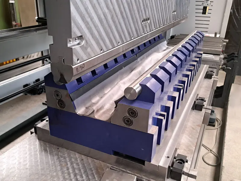 Pre výrobu zvarencov zabezpečujeme na vlastných strojoch delenie plazmou a kyslík/acetylénom. Následné ohýbanie realizujeme na ohraňovacom lise DURMA AD-R4 s automatickou kompenzáciou bombírovania zaručujúce konštantnú presnosť pri ohýbaní dlhých súčiastok.